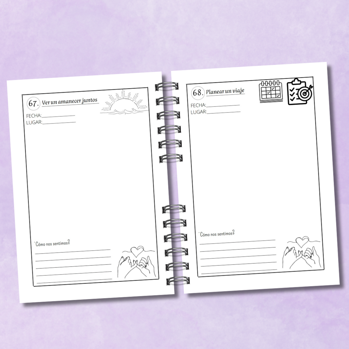 El libro es tamaño A5, es decir mide 14.8cm de ancho y 21cm de alto. Sus hojas gruesas de 140 grs son ideales para escribir y dibujar con todo tipo de lápices sin que se traspase.